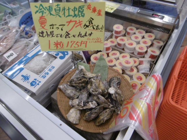 ☆8/19 入荷情報☆ 2015年08月19日 岩カキのシーズンが終わってしまいましたヾ(▼ヘ▼;) でも!夏だってカキが食べたい! なので旬の真カキを冷凍した「冷凍真カキ」を仕入れて販売しております!! 加熱用なので焼いたり、蒸したりで美味しく頂けます!! ぜひ一度ご賞味を!!